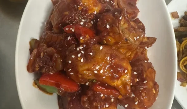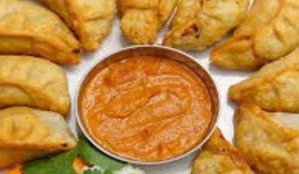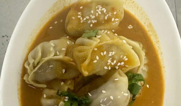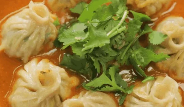 Spicy, Steam momos bask in spicy tomato tango mix with hot chilli sauce onion, pinuts, coriander.