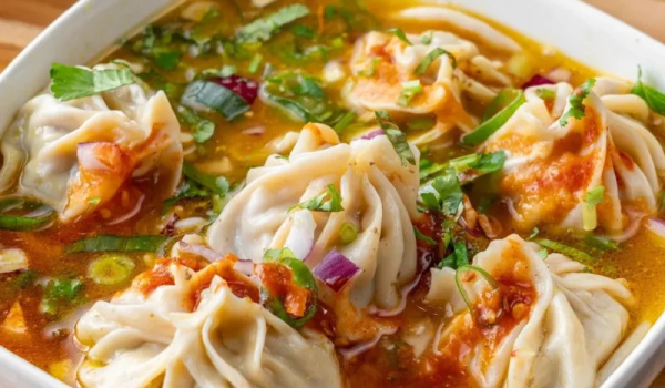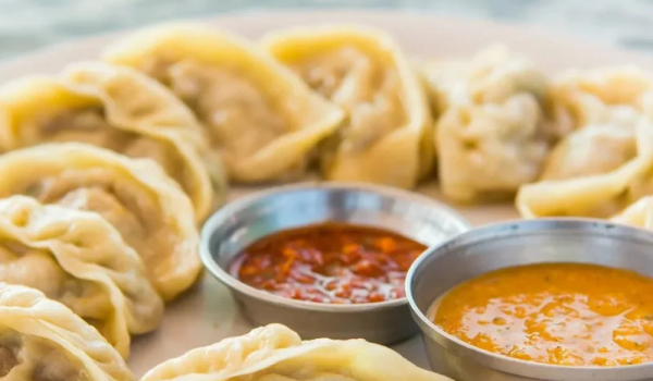 Momos are bite sized steamed or fried dumplings. They boast a soft, doughy exterior stuffed with a mixture of meat, vegetables and spices.