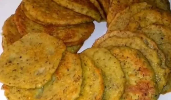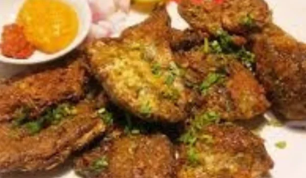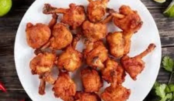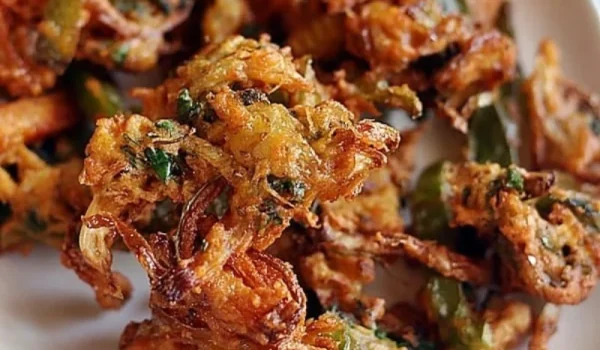 Vegetarian .Four pieces. Crispy fritters bursting with onion, cabbage, and chilli a medley of masala spices.