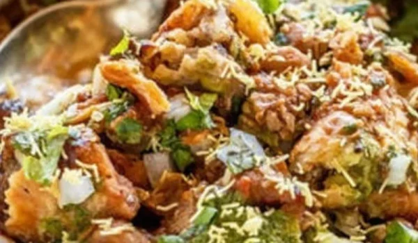 Made with crispy wafers layered with mashed potato, chickpeas, chutneys and spices.